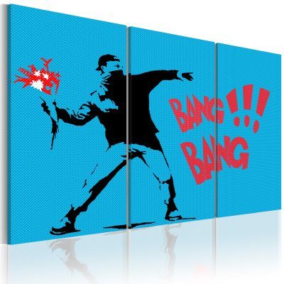 Wysokiej jakości obraz "Bang bang! - triptych" drukujemy na prawdziwym płótnie malarskim. To jeden z wielu oryginalnych wzorów, które możesz zamówić na naszym sklepie.